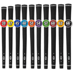 Popular velvet style grip with a great feel and consistency. Each size system has its own core size and weight.